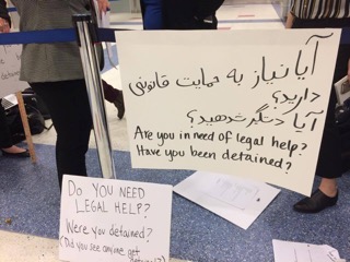 وخلال تواجدها بساحة مطار جون كينيدى الدولى، قالت "كايت" إن الكثير من المحامين والمواطنين متواجدين بصالة الوصول الرئيسية، كما استأجرت شركات قانونية مساحة من المطاعم بالمطار لتمكن موظفيها من مساعدة الأسر المنتظرين خروج أقاربهم المحتجزين. وقد زودت "كايت" اليوم السابع بصور من المطار قبل تعليق قرار الحظر.