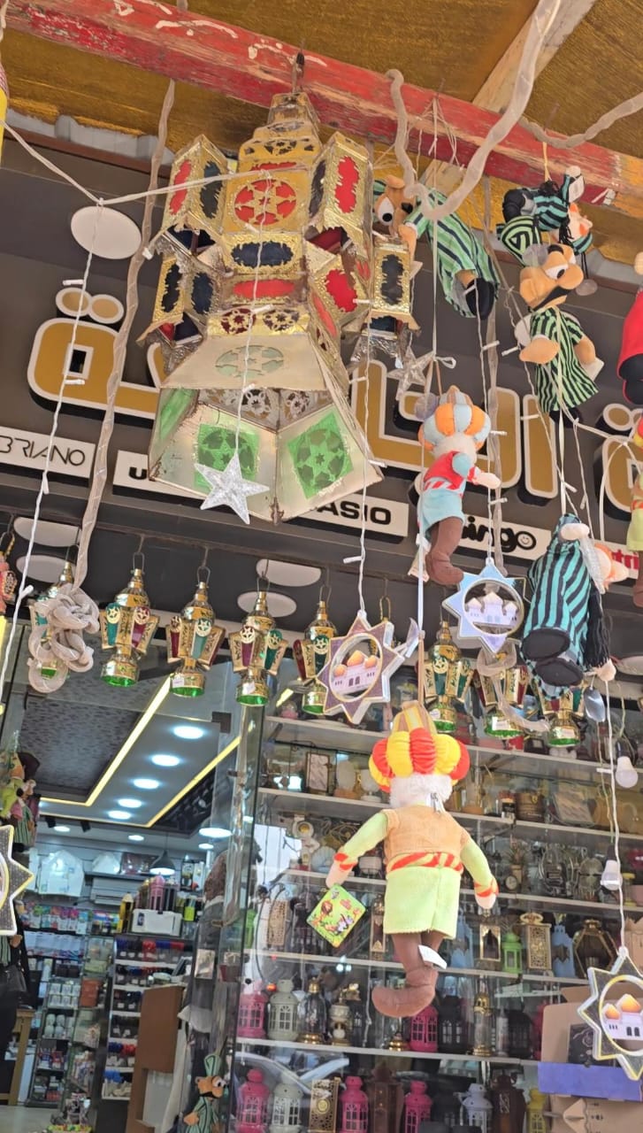 وأضاف: فيه فانوس مصري خشب تاني بنفس السعر، ويوجد حجم أصغر من الصاج الملون بـ 80 جنيها به إضاءة وأغاني رمضان الشهيرة، وفيه فانوس رمضان الصغير خالص على شكل ميدالية خشبية بـ 5 جنيهات، وفيه في منتجات السنة دي علب مناديل مخصصة لشهر رمضان المبارك مرسوم عليها الشخصيات الرمضانية الجميلة زي بوجي وطمطم وغيرهم، أو على شكل عربة الفول بعجلاتها ومكتوب عليها رمضان كريم بثلاثين جنيها فقط، وفيه برده خودديات رمضان على شكل الهلال والنجمة والفانوس بخمسين جنيها بقماش الخيامية عشان تدي روايح رمضان جوه البيت، وزواق رمضان بألوانه الجميلة، والعرايس على شكل كرتون رمضان زي بكار، وعم شكشك، وحبال النور والإضاءات بأشكال وألوان جميلة مختلفة موفرة للطاقة عشان ما تستهلكش كهربا كتير، وفيه استيكرات رمضان بعشرة جنيه وممكن يتغسل ويتعلق تاني على الحيطة عادي في السنة إللي بعديها، وطبلة رمضان المزخرفة بـ 15، و 20 جنيها).